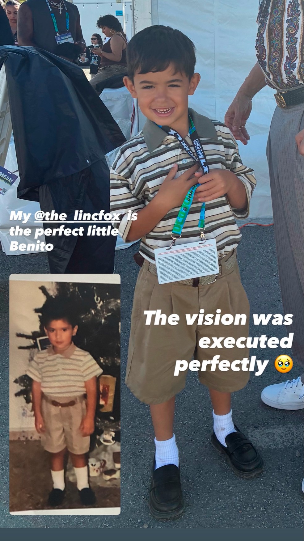 O ator mirim Lincoln Fox interpretou Bad Bunny no Super Bowl — Foto: Reprodução/Instagram