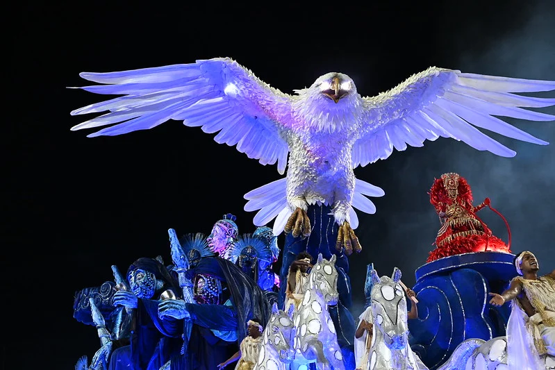 (Foto: Clara Radovicz | Riotur)O desfile foi uma referência à cultura afro-gaúcha e fez uma homenagem ao Príncipe Custódio, figura histórica entre seguidores de religiões de matriz africana no Rio Grande do Sul, estado com maior percentual de adeptos da umbanda e do candomblé do Brasil, segundo o IBGE.